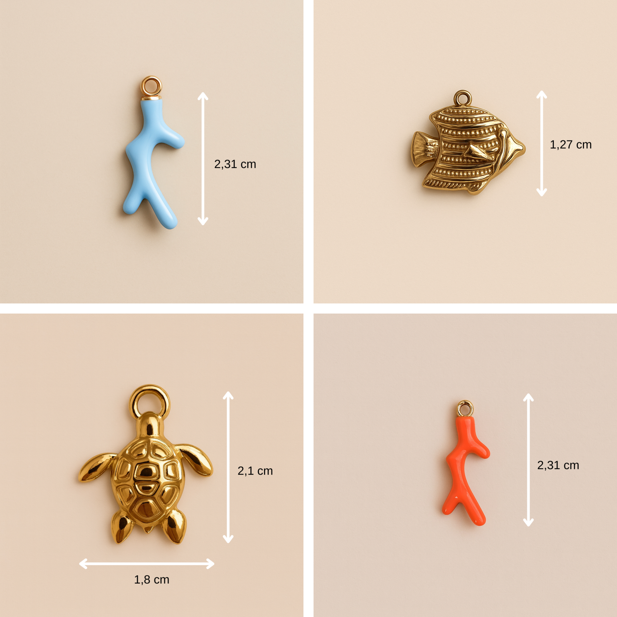 Unsere Schmuckstücke – mit Ausnahme von Perlen – bestehen aus hochwertigem Edelstahl und sind mehrschichtig mit 18 Karat Gold vergoldet. So vereinen sie die Optik und den Glanz echten Goldes mit Langlebigkeit und einem fairen, erschwinglichen Preis.